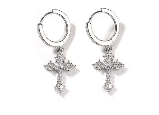 CROSS HUGGIES- 925 Sterling Silver 16 mm cross huggies earrings