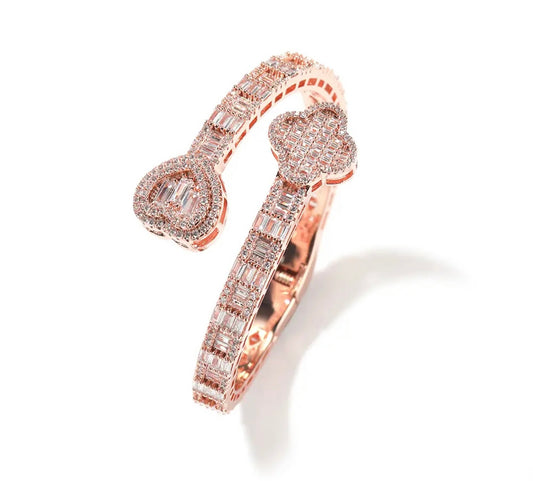 HEART BREAKER- 6 mm Baguette double heart bangle