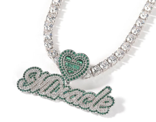 EMERALD - Green heart hook nameplate pendant