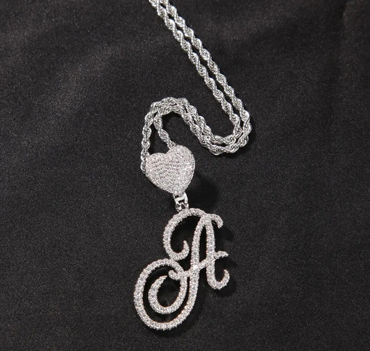 CURSIVE LETTER- 5 cm heart hook cursive letter pendant