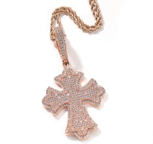 CONCRETE ROSE- 5.9 cm Rose cross pendant