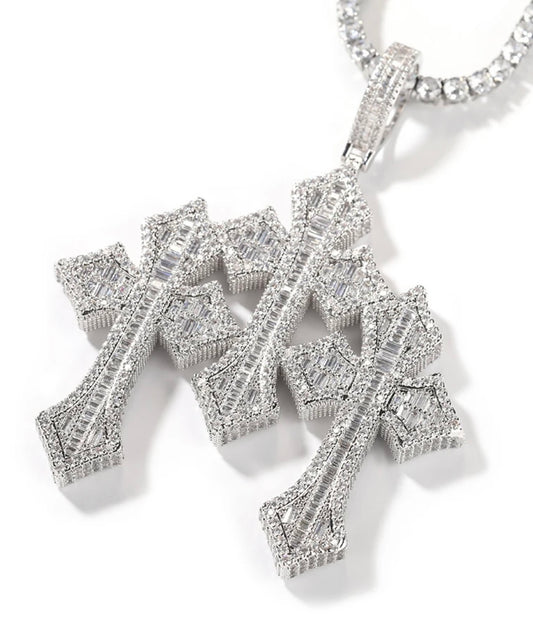 MOIS TRIO- 70.5 mm Moissanite three cluster cross pendant