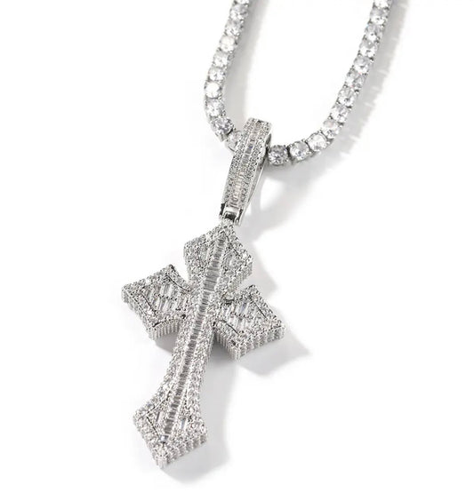 CROSS MY HEART- 5.8 cm 3D Baguette cross pendant