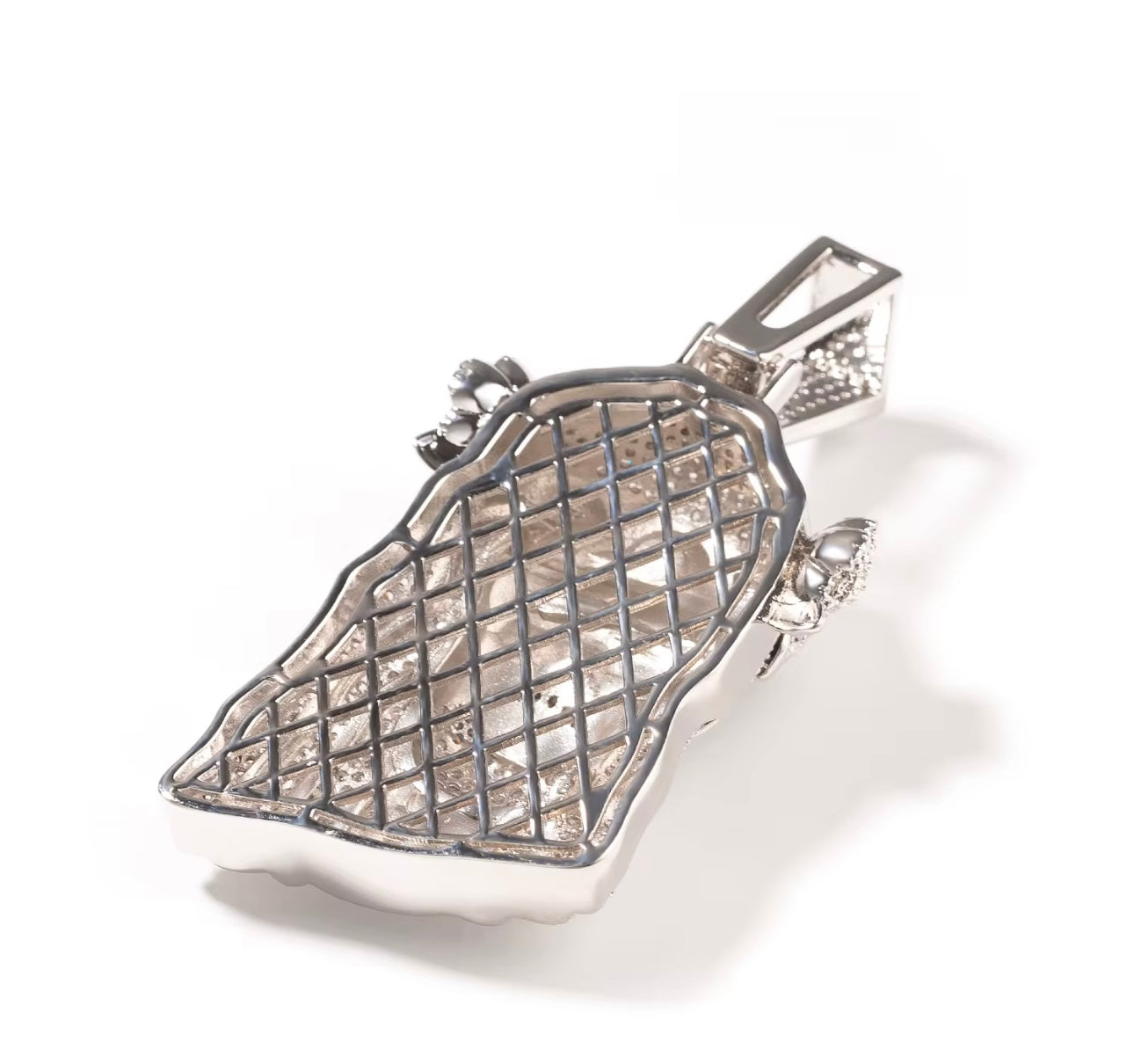 Product Description: Rose crown Jesus piece pendant. Every detail—from the hair and beard to the hook and rose crown—shines with precision-set stones for next-level brilliance. The rose crown adds a unique, elevated touch, combining divine symbolism with modern hip-hop sophistication.